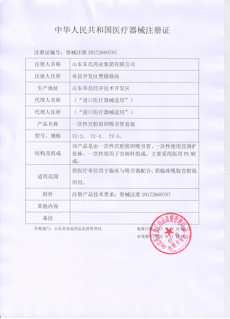 批准文号: 鲁械注准20172660787 【验证真伪】