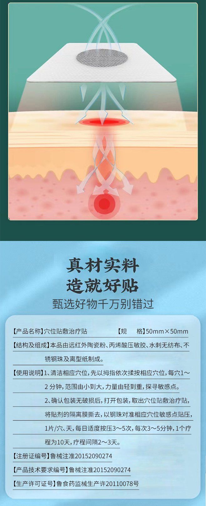 | 产品卖点 | 正规专业化批文;每张敷贴都有高科技新型永磁复合体材料(促进药物渗透吸收);同类仅有春季生长贴(我们可贴一年四季);经过七年大量临床实践验证而成。 |