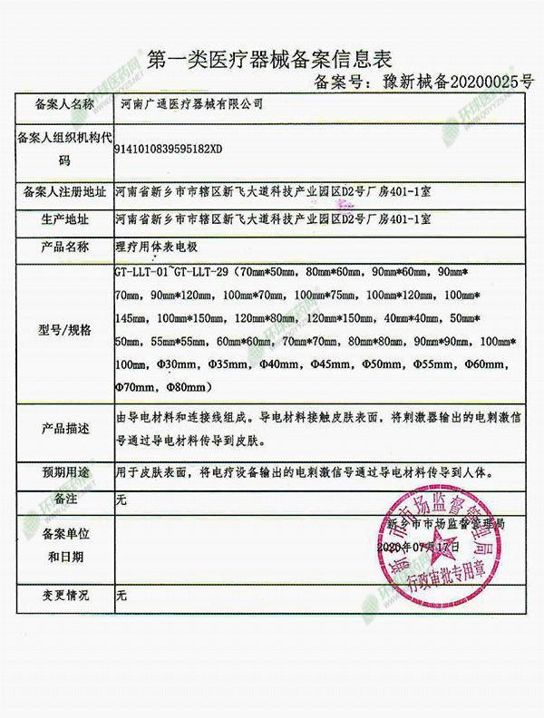 | 产品用途 | 用于皮肤表面,将电疗设备输出的电刺激信号通过导电材料传导到人体。 |