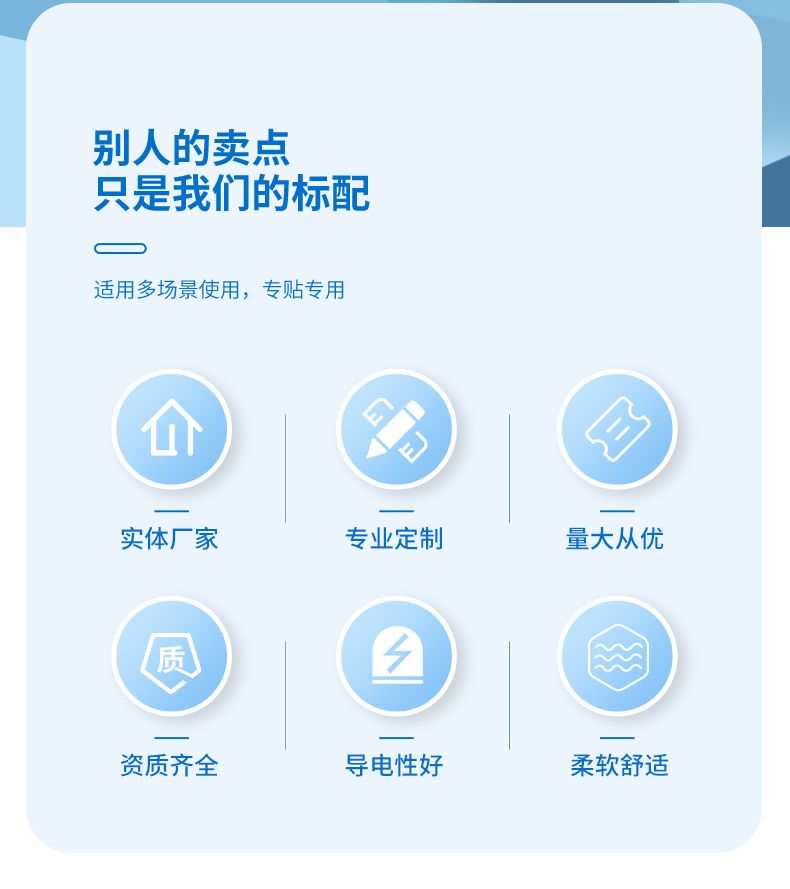 | 产品卖点 | 疗效确切、代理方便;效果好、价位低;经济实惠、效果好、备受患者的青睐;低价招商; 市面上有的各类大小规格理疗电极片,超声耦合贴片,理疗用体表电极均可加工定制! |