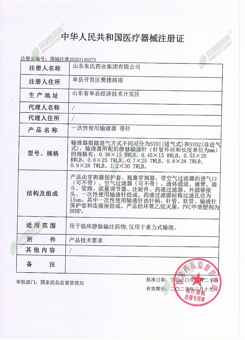 | 英文名称 | DISPOSABLE INFUSION SET WITH NEEDLE |