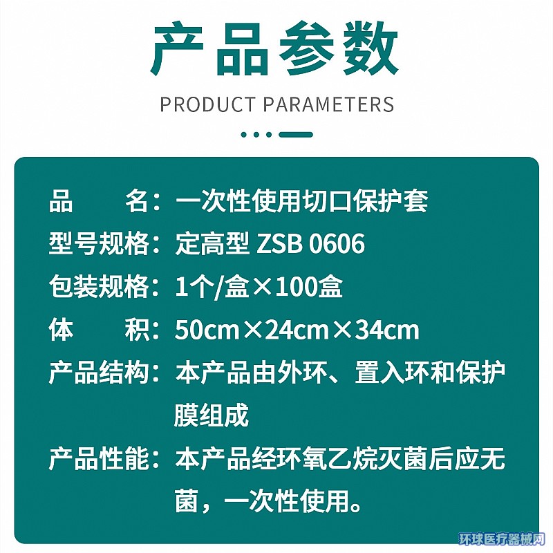 | 主要成分 | 一次性使用切口保护套由外环、置入环和保护膜组成。 |
