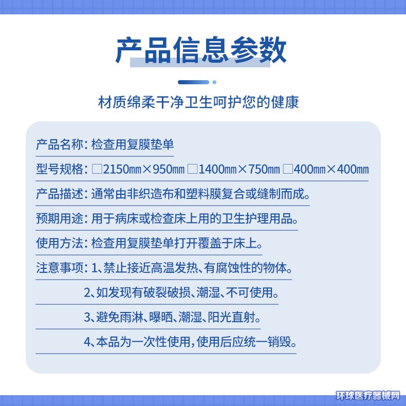 | 产品名称 | 检查用覆膜垫单 |