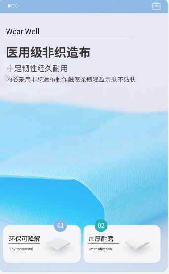 | 产品用途 | 适用于各科手术中体液渗透,能有效隔离,防止交叉感染,保护医疗机构手术床面不受污染。同时也可供美容院、保健中心、家庭日常防护使用。 |