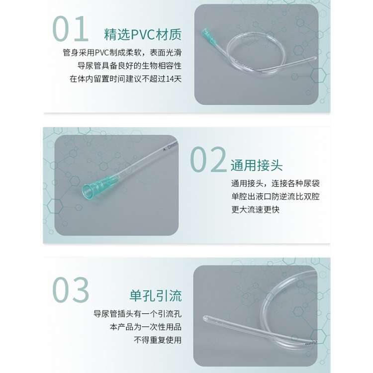 | 使用方法 | 1、根据患者体型不同选用合适规格的导尿管。 2、从开启口打开包装,取出导尿管,操作人员手部和患者使用部位应进行常规消毒,操作人员应戴好手套。 3、为便于导尿管插入,导尿管**及管身可用医用液体石蜡或其他合适的润滑剂润滑 4、导尿管插入后,应用胶带等合适方法加以固定,防止脱落滑出体外,患者引流部位用灭菌纱布遮盖,防止外界环境污染。 5、导尿管与引流导管连接,通过流量调节装置控制流量 |