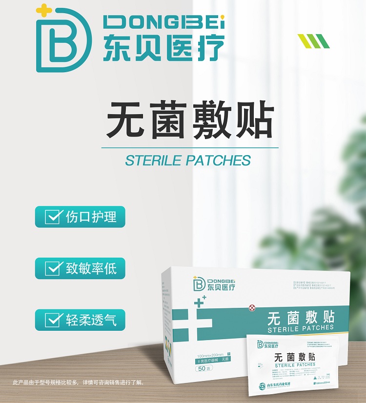 | 补充说明 | 东贝医用无菌敷贴为一次性使用,具有良好的吸水性,吸收面对于渗液有较好的吸收性!耐磨耐用,涂胶非织造布耐磨耐用,适合用在不同部位!透气性性好,轻松隔离空气、粉尘、细菌,避免有害物质接触伤口! 产品规格:1贴/袋x50袋/盒,规格15cmx10cm;1贴/袋x80袋/盒,规格7cmx6cm。 产品优势: 1、柔软易形变:适用于身体各个部位,尤其是活动的关节等弯曲部位。 2、超薄而透明:易于观察伤口情况。 3、防水:病人可以淋浴。 4、透气:空气透入透出,保持伤口**佳愈合环境。 5、阻菌:阻止细菌侵入,无外界感染危害。 6、方便:具有吸湿、退黏特性,不沾染伤口,易于更换。 使用方法:打开包装,取出一次性医用无菌敷贴,撕开隔离纸贴于切口或患处 注意事项:1.本产品的保质期为两年;2.使用前请检查包装,包装破损禁止使用。3.本品为一次性使用,用后销毁。 |
