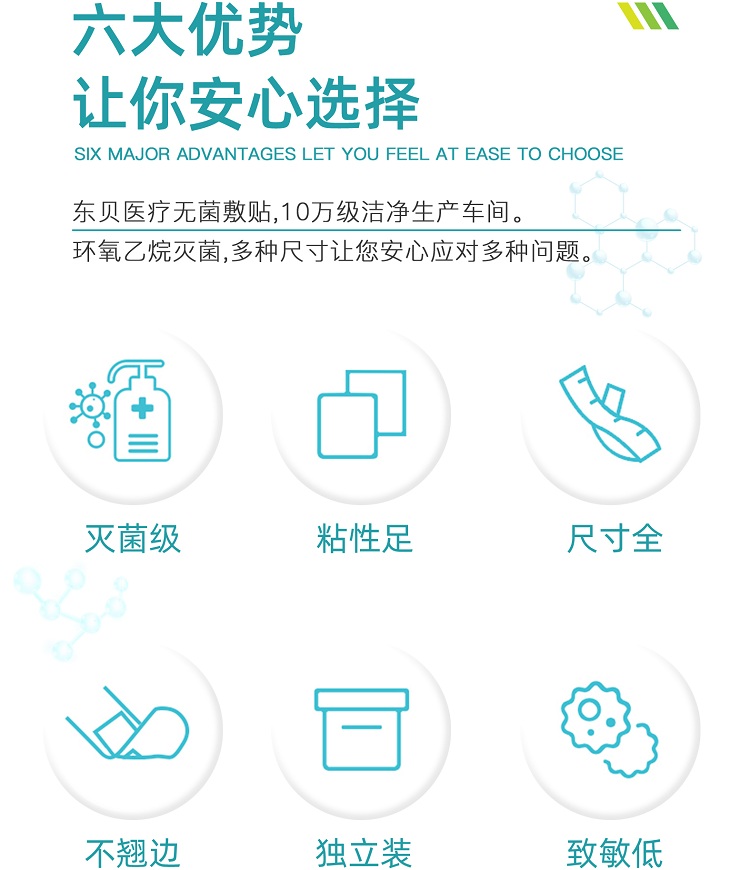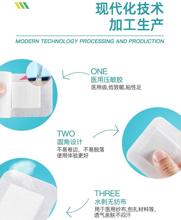 | 产品卖点 | 优质低致敏无纺布材质,透气、吸水、柔软、灭菌、自粘,易撕易贴,轻松方便。 |