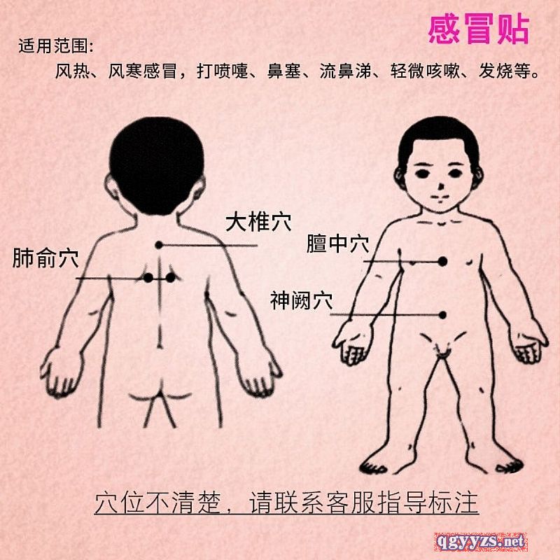 | 使用方法 | 将穴位周围清洗干净。待干燥后,揭去本品防粘纸,贴于大椎穴、神阙穴、天突穴、涌泉穴。每贴敷6-8小时更换一次。 |