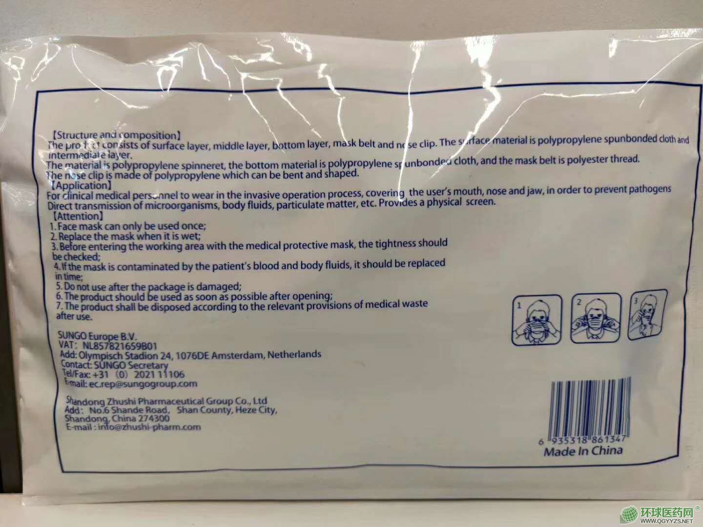 | 补充说明 | 东贝一次性使用医用外科口罩供临床医务人员在有创操作过程中佩带,覆盖住使用者的口、鼻及下颌,为防止病原体微生物、体液、颗粒物等的直接透过提供物理屏障。 一次性使用医用外科口罩说明书 【产品名称】一次性使用医用外科口罩 【商品名/商标】东贝 【型号规格】10个 【结构与组成】东贝一次性使用医用外科口罩由表层、中间层、底层、口罩带、鼻夹组成,表层材料为聚丙烯纺粘布、中间层材料为聚丙烯喷丝法制成的过滤熔喷布、底层材料为聚丙烯纺粘布、口罩带为涤纶线和少量氨纶线针织而成、鼻夹为可弯折可定型的聚丙烯制成。 【适用范围】供临床医务人员在有创操作过程中佩带,覆盖住使用者的口、鼻及下颌,为防止病原体微生物、体液、颗粒物等的直接透过提供物理屏障。 【生产厂家】山东朱氏药业集团有限公司 【注册证号】鲁械注准20192140064 【生产地址】单县开发区樊楼路南 【条形码】6935318861002 |