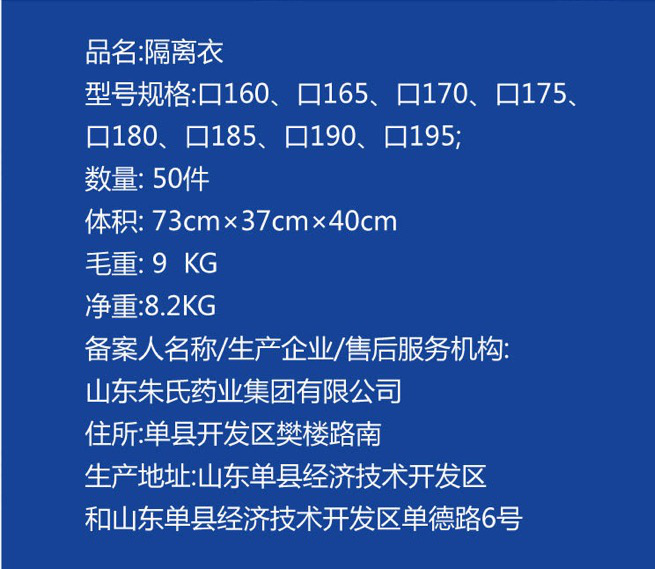 | 产品名称 | 隔离衣 |