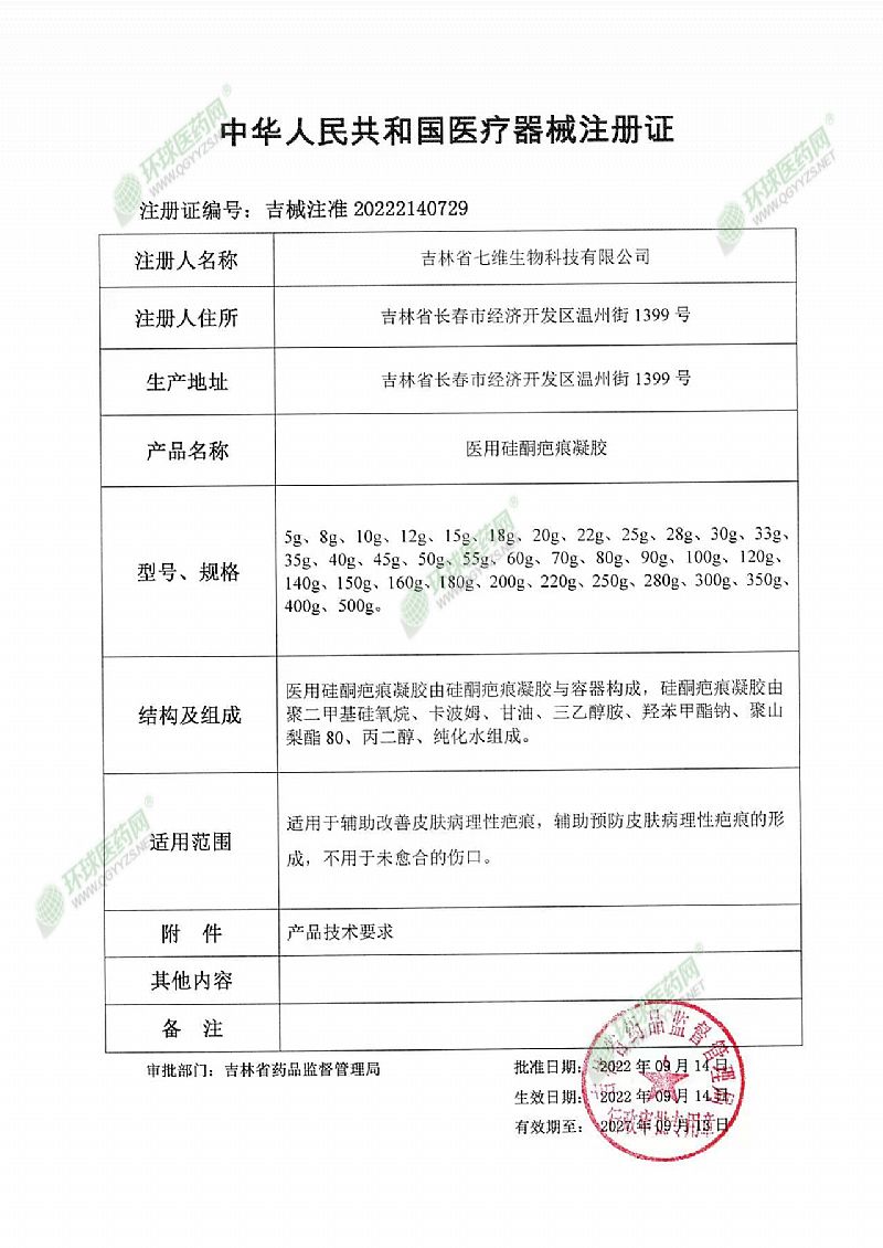| 产品名称 | 医用硅酮疤痕凝胶 |