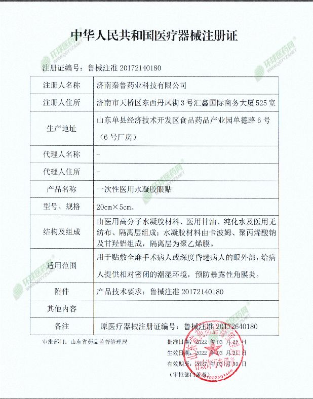 | 使用方法 | 【注意事项】1、本品为一次性使用无菌产品、包装袋破损严禁使用; 2、已过有效期限严禁使用。 【使用说明】1、医护人员将产品从包装中取出,去掉隔离层,水凝胶层贴敷 于患者眼部。2、若用于全麻手术病人,建议在麻醉诱导期即开始使用,提前给眼部营造潮湿环境。3、可持续贴敷7-12小时/贴。 |