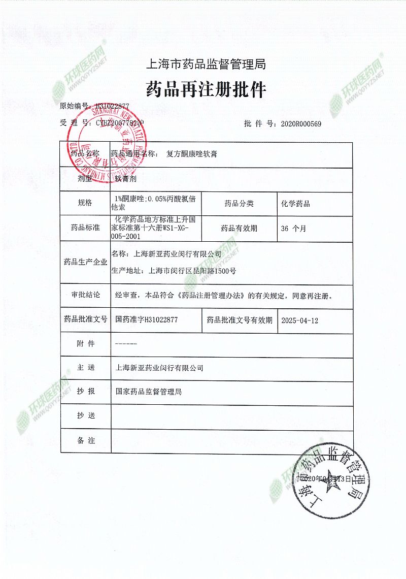 | 补充说明 | 【性状】本品为黄白色软膏。 【禁忌】1.病毒性感染如疱疹、水痘等禁用。2.孕妇及哺乳期妇女禁用。 【注意事项】 1.避免接触眼睛和其他黏膜(如口、鼻等)。2.用药部位如有烧灼感、红肿等情况应停药,并将局部药物洗净,必要时向医师咨询。3.不得长期大面积使用。4.连续使用不能超过4周,面部、腋下、腹股沟及外阴等皮肤细薄处连续使用不能超过2周,症状不缓解请咨询医师。5.婴幼儿和儿童慎用。6.对本品过敏者禁用,过敏体质者慎用。7.本品性状发生改变时禁止使用。8.请将本品放在儿童不能接触的地方。9.儿童必须在成人监护下使用。10.如正在使用其他药品,使用本品前请咨询医师或药师。 【不良反应】1.局部偶见过敏反应,如出现皮肤烧灼感、瘙痒、针刺感等。2.长期使用时可出现皮肤萎缩、毛细血管扩张、色素沉着以及继发感染。 【药理毒理】本品所含酮康唑为抗真菌药;丙酸氯倍他索为糖皮质激素,具有较强的抗炎、抗过敏作用。 |