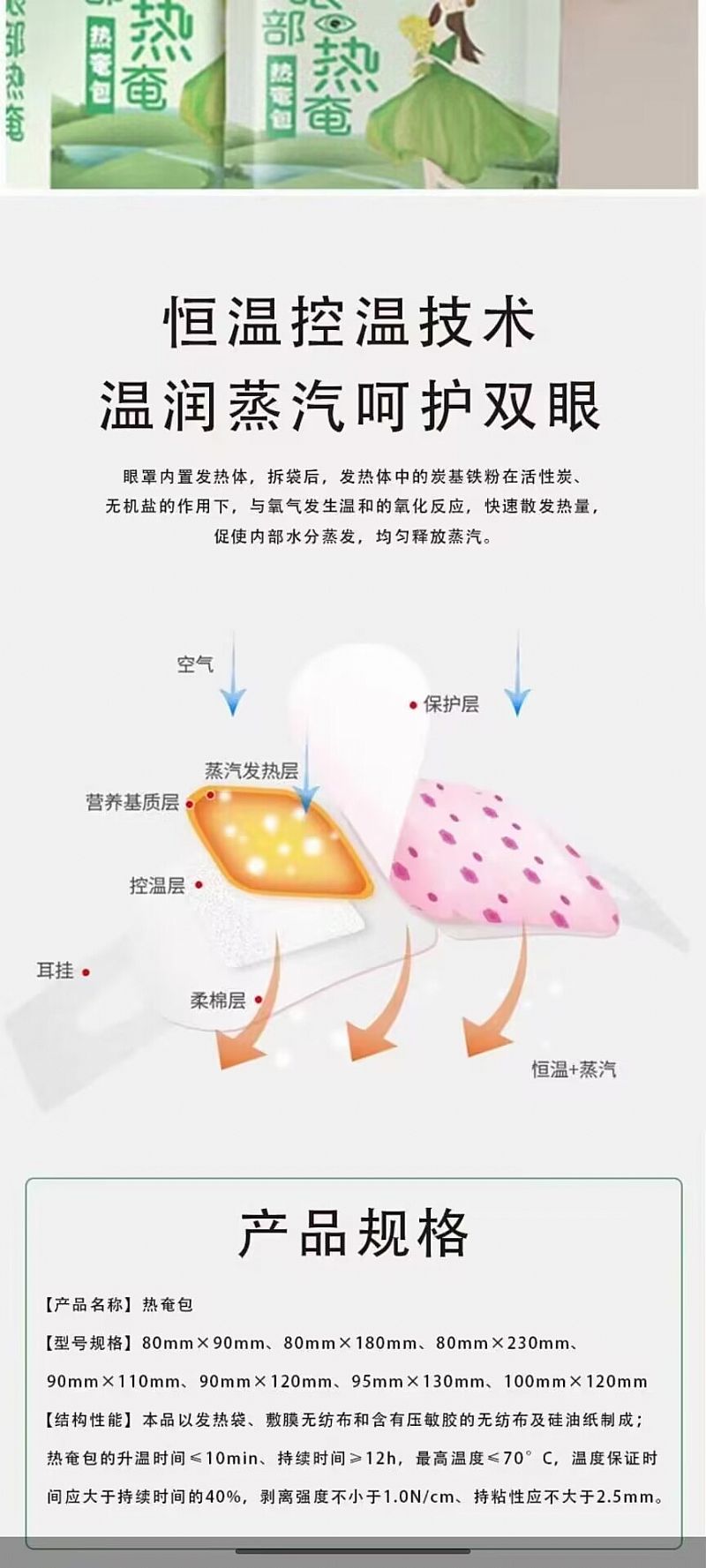 | 主要成分 | 本品以发热袋、敷膜无纺布和含有压敏胶的无纺布及硅油纸制成 |