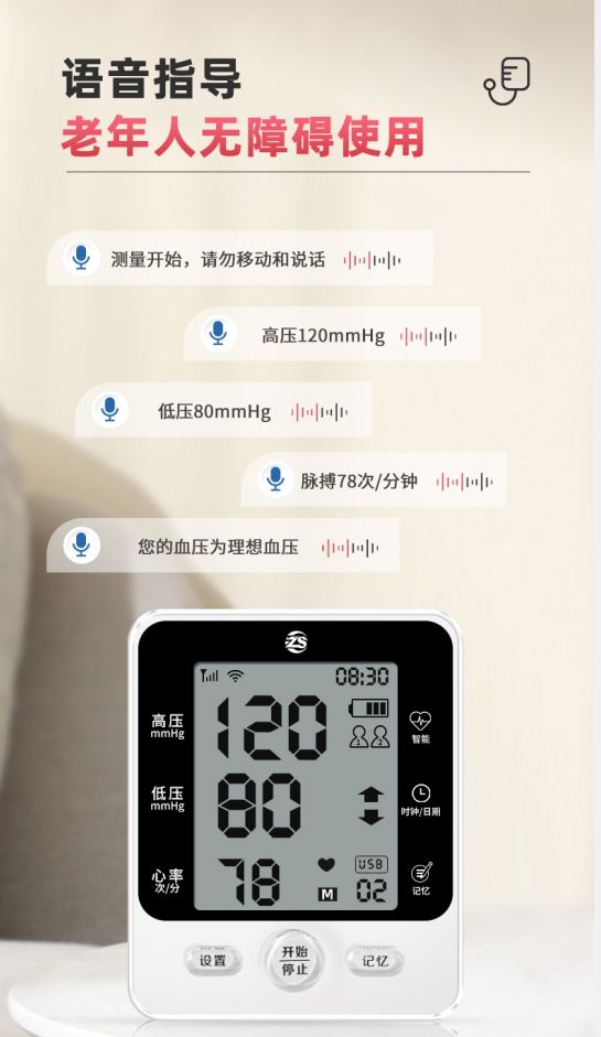 | 产品卖点 | 一键测量、语音播报、高清大屏; |