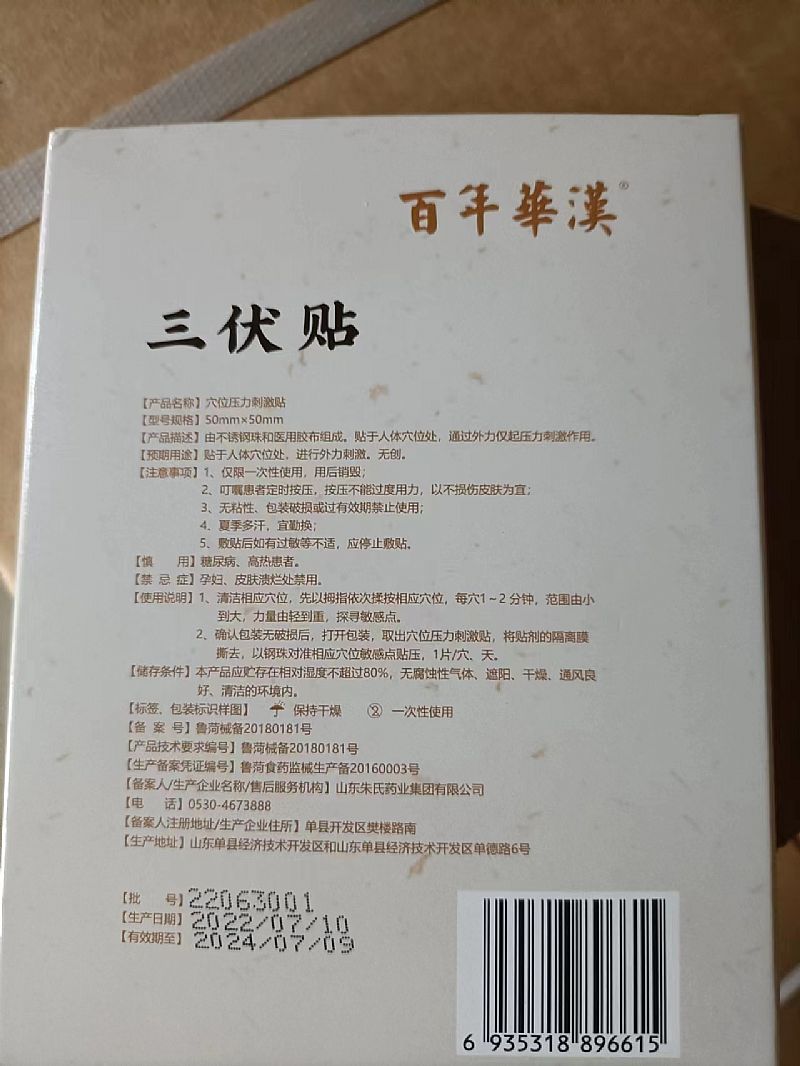 | 补充说明 | 【注意事项】 1、仅限一次性使用,用后销毁; 2、叮嘱患者定时按压,按压不能过度用力,以不损伤皮肤为宜; 3、无粘性、包装破损或过有效期禁止使用; 4、夏季多汗,宜勤换; 5、敷贴后如有过敏等不适,应停止敷贴。 【慎 用】糖尿病、高热患者。 【禁 忌 症】孕妇、皮肤溃烂处禁用。 |