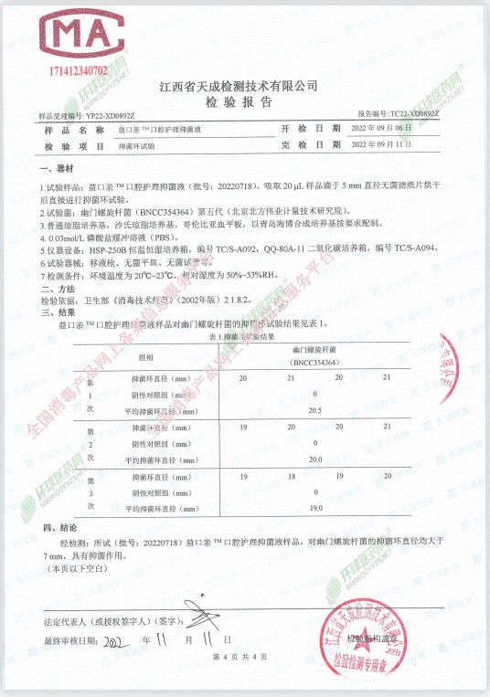 | 产品名称 | 幽门螺杆菌口腔抑菌液 |