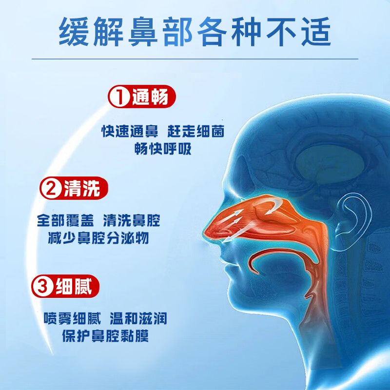 | 使用方法 | 外用,采用左手拿着喷右鼻孔、右手拿着喷左鼻孔,这样交叉喷的方式。低头向前轻轻微倾,向鼻腔两侧喷,避免向鼻中隔方向喷。 |