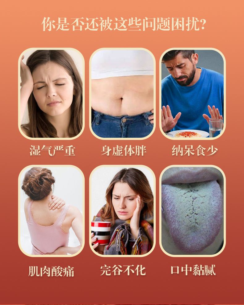 | 产品用途 | 适合身体湿气过重,经常感觉身体困重、经常腹泻,或身体虚胖,肌肉酸痛倦怠乏力,纳呆食少,完谷不化,口中粘腻等因湿气重引起不适的亚健康人群,促进健康。 |
