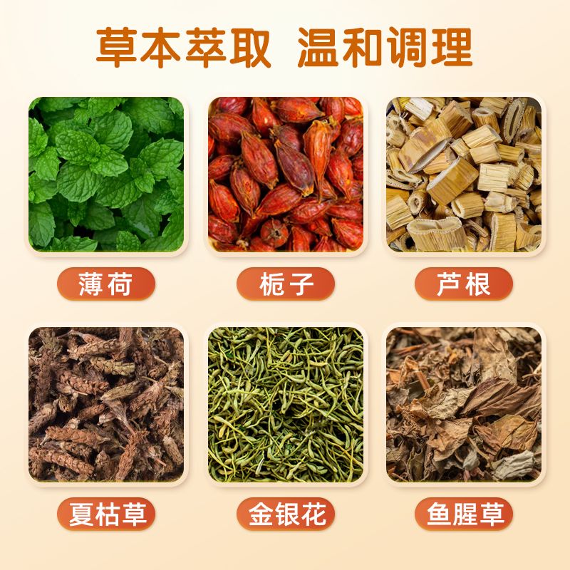 | 主要成分 | 本品是以栀子、金银花、鱼腥草、蒲公英、芦根、夏枯草、马齿苋、薄荷为主要原料,经特定工艺加工而成。 |