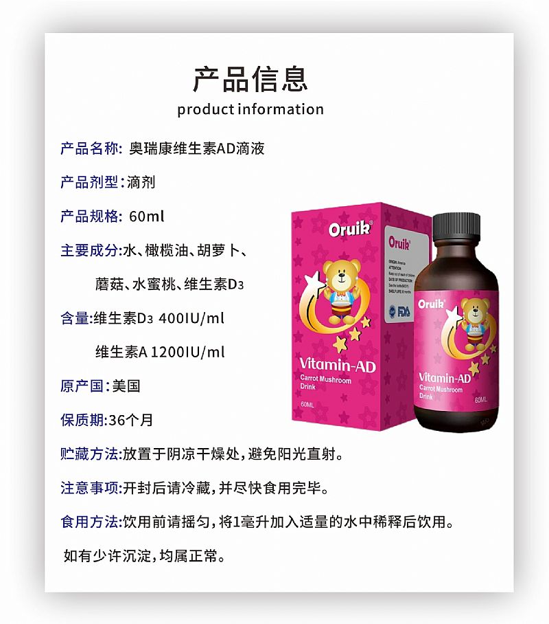 | 产品名称 | 美国原装进口维生素AD滴液 |
