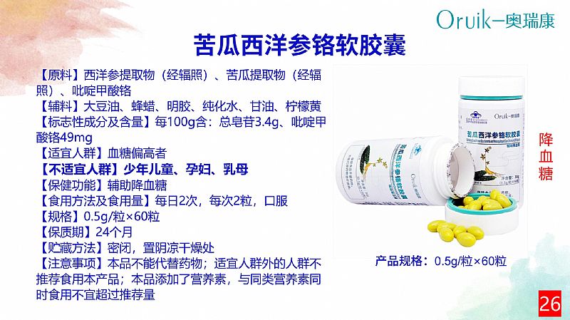 | 产品名称 | 苦瓜西洋参铬软胶囊 |