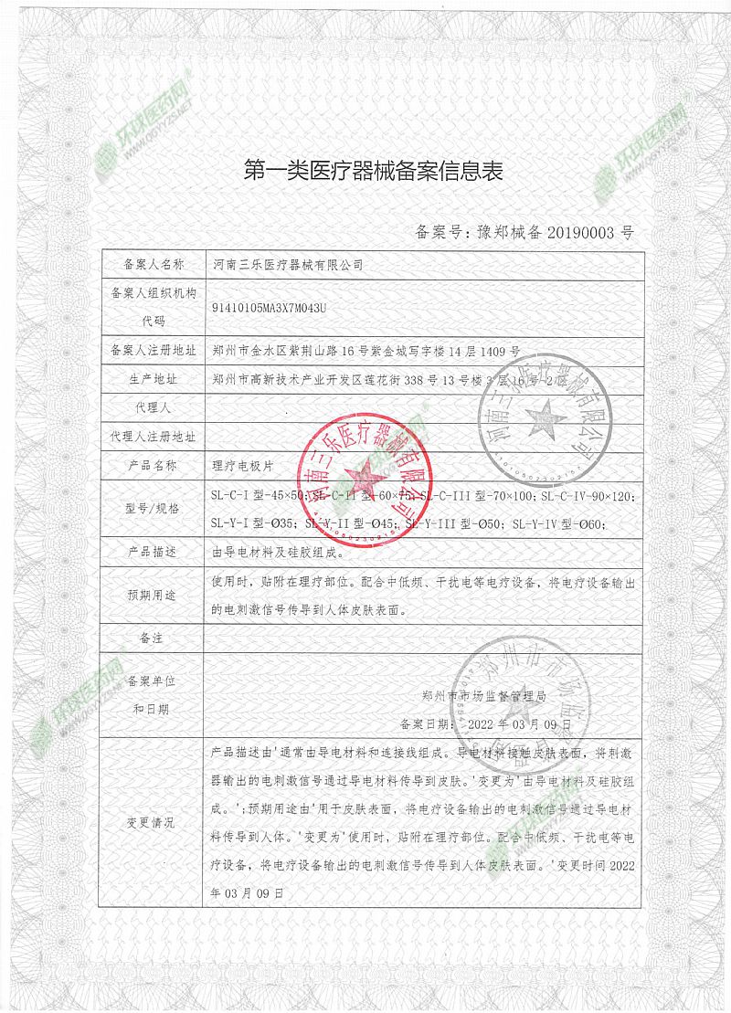 | 产品用途 | 理疗电极片由导电材料及硅胶组成。使用时,贴附在理疗部位。配合中低频、干扰电等电疗设备,将电疗设备输出的电刺激信号传导到人体皮肤表面。 |