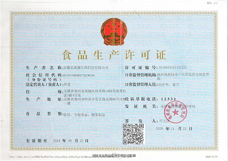 | 产品名称 | 亿派森黑松牡蛎谷物冲调制品 |