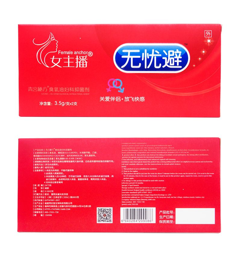 | 补充说明 | [注意事项] 1.本品为外用品,不能代替药物 2.妇女经期及孕期禁用 3.对本品过敏者慎用 [有效期]24个月 [规格]3.5g/支 [贮藏方法]密封,阴凉避光处存放 [卫生许可证] (闽)卫消证字(2016 )第0005号 [执行标准] Q/FTAT007-2017 |