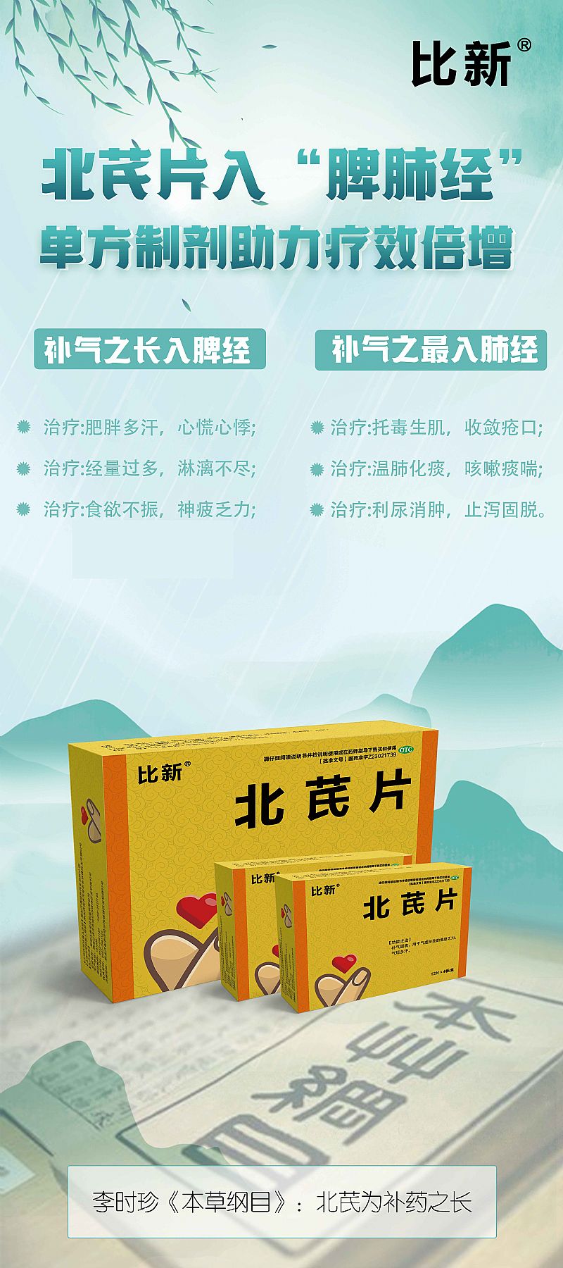 | 功能主治 | 补气固表,托毒生肌,利水消肿。用于气虚所致倦怠乏力,气短多汗,便溏腹泻,脱肛,子宫脱垂,疮口久不愈合等。 |