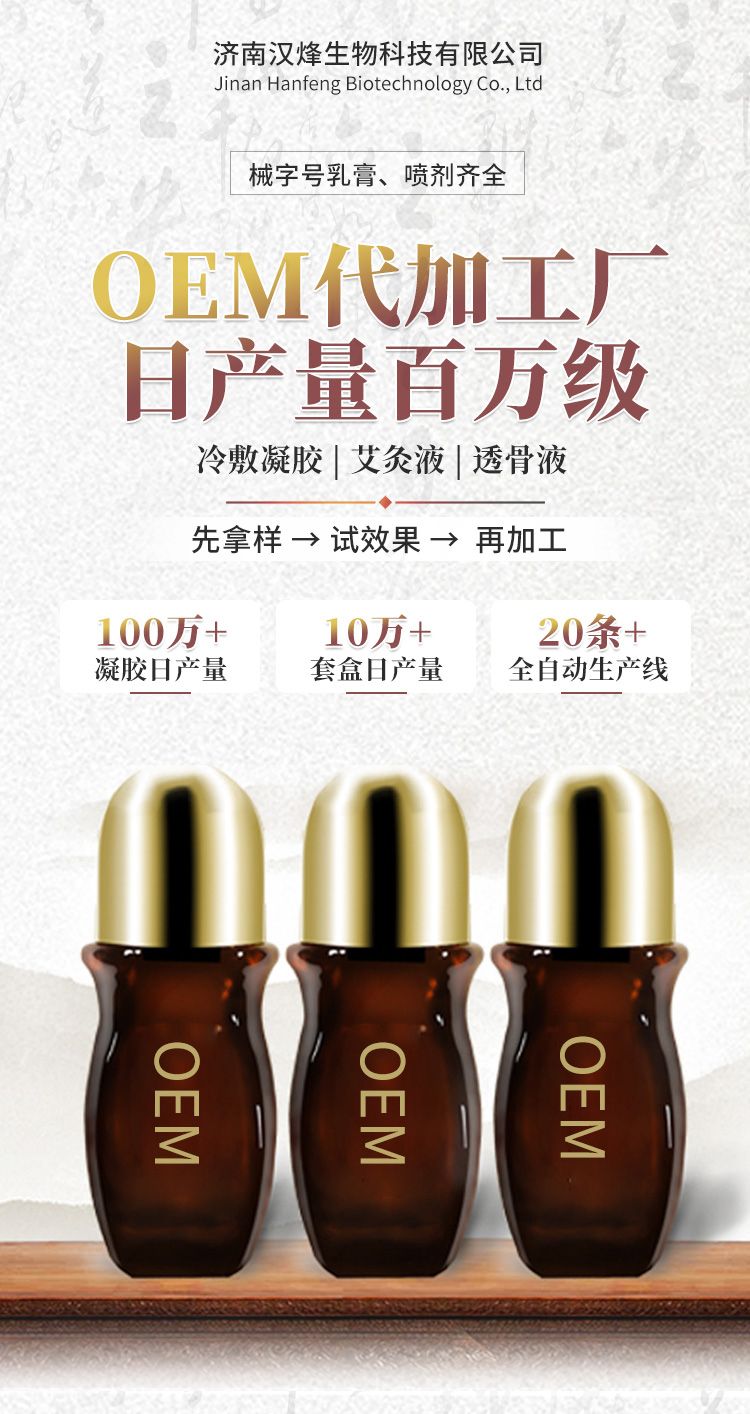光子冷敷凝胶代加工颈肩腰腿涂抹型艾灸液汉磁乳