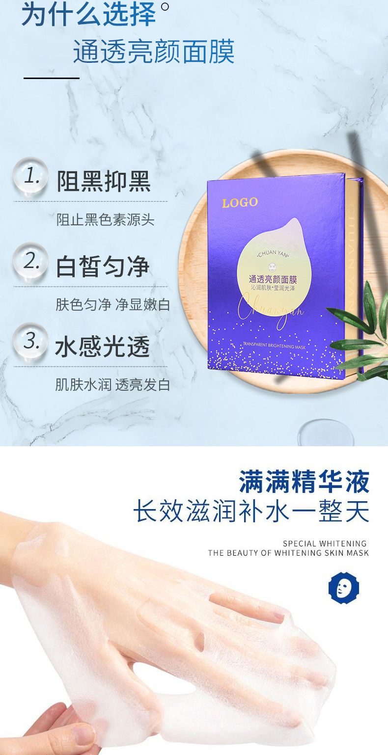定制通透亮颜面膜润泽舒缓补水保湿净透细腻柔滑美容院