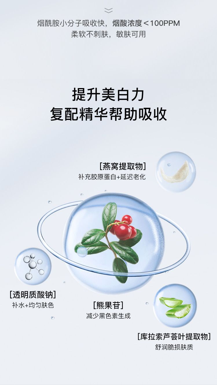 | 主要成分 | 燕窝提取物、透明质酸钠、熊果苷 |