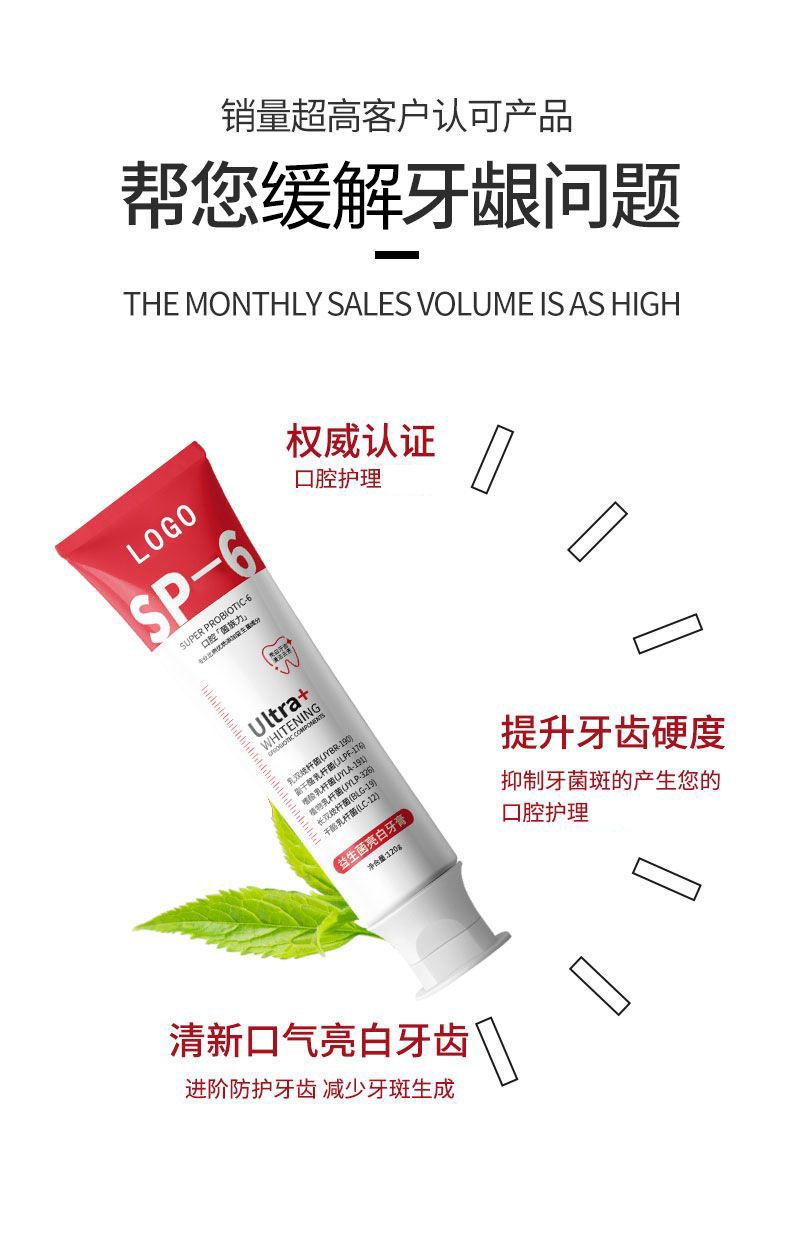 定制益生菌牙膏洁白香口舒爽亮白清新口气去烟渍牙渍