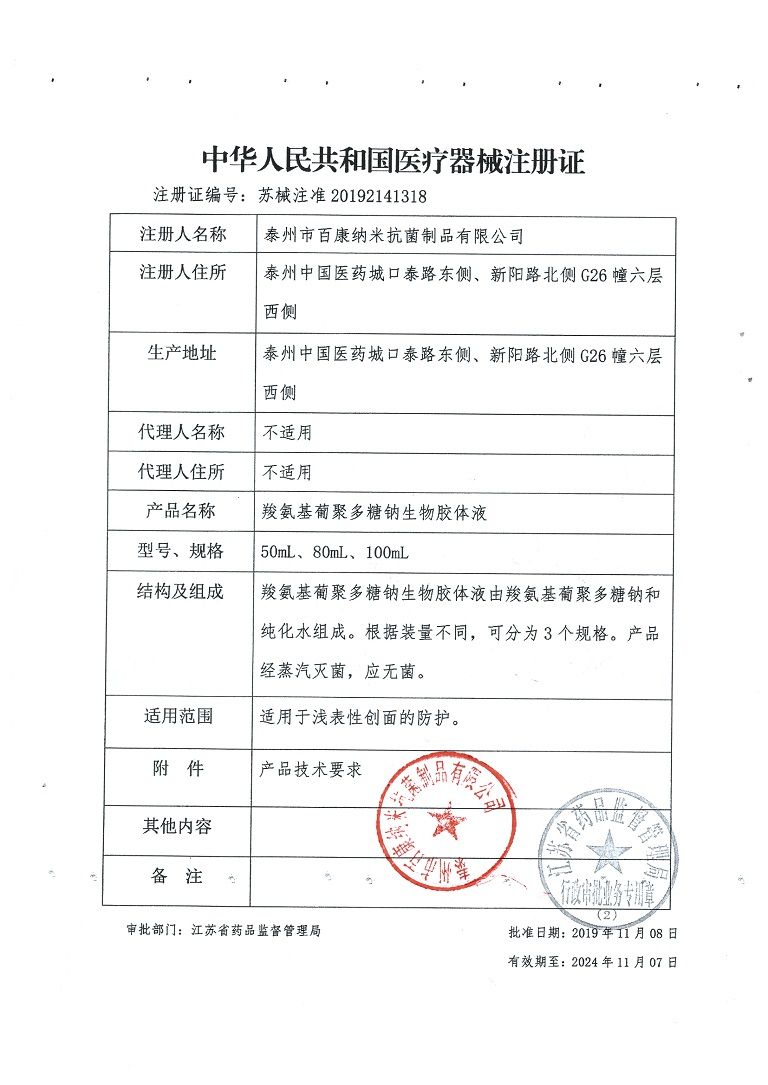 | 产品名称 | 羧氨基葡聚多糖钠生物胶体液 |