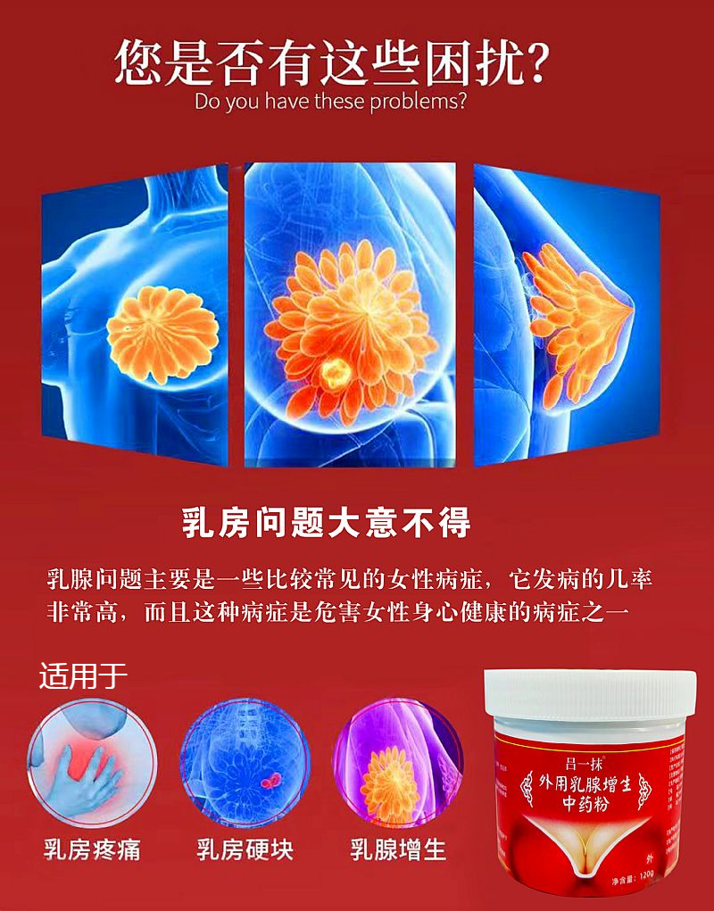 | 产品用途 | 适用于乳腺增生、乳房肿痛、乳房硬块、乳腺炎等人群 |