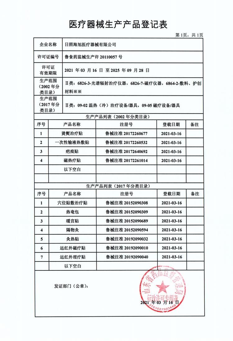 - 海旭医疗主要承接各类暖宫贴定制、远红外理疗贴代加工、磁疗贴贴牌加工、穴位敷贴厂家、灸热贴代加工、退热贴代加工、烫熨治疗包定制、小儿咳 喘腹泻膏药定制加工、艾灸贴定制、化妆品定制、保健食品定制、喷剂、乳膏类加 工等医院临床和终端诊所所需的系列产品。公司的经营范围有:骨科,妇科、男科、手术科、五官科和小儿科等。