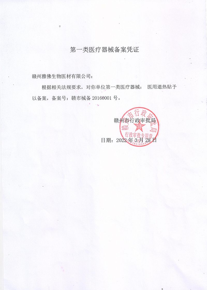 | 产品用途 | 用于发热患者的局部降温,仅用于体表完整皮肤。 |