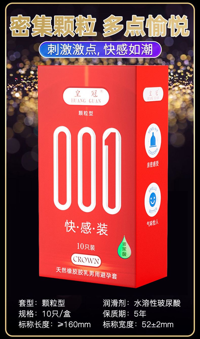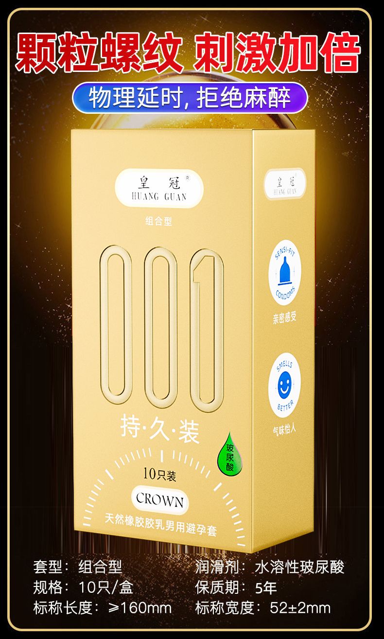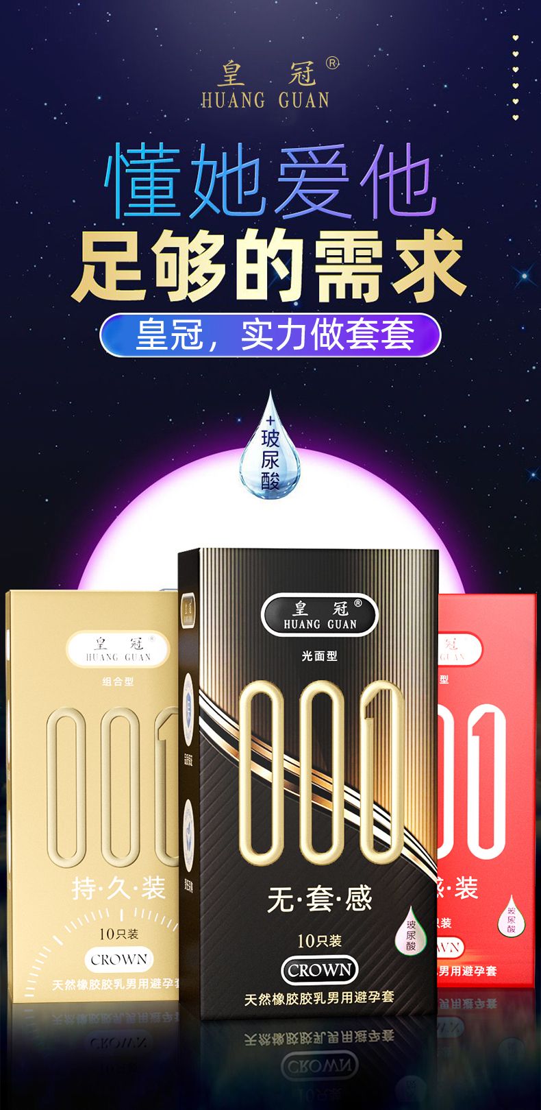 | 补充说明 | 皇冠避孕套采用天然乳胶为原料经加工制成,润滑剂为二甲基硅油,对天然乳胶过敏者慎用,或使用前咨询医生,该避孕套为一次性用品,切勿重复使用,使用后请妥善弃置。该避孕套润滑剂中不含杀精剂或药物成分。皇冠避孕套在正确使用下,有助于降低受孕风险及减少某些性传播疾病感染的风险。 |