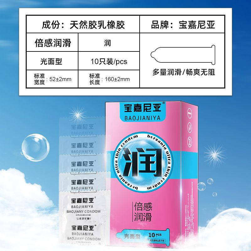 | 补充说明 | 宝嘉尼亚避孕套采用天然乳胶为原料经加工制成,润滑剂为二甲基硅油,对天然乳胶过敏者慎用,或使用前咨询医生,该避孕套为一次性用品,切勿重复使用,使用后请妥善弃置。该避孕套润滑剂中不含杀精剂或药物成分。宝嘉尼亚避孕套在正确使用下,有助于降低受孕风险及减少某些性传播疾病感染的风险。 |