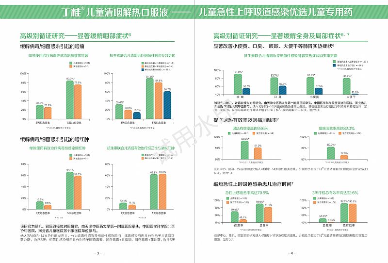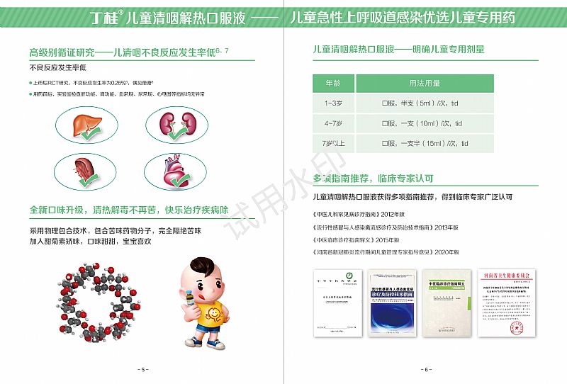 | 补充说明 | 专为儿童定制的急性上感药物 1、口味升级 创新矫味技术,**阻隔苦味,提高患儿服药依从性 2、剂量明确 有分年龄段用法用量,适合不同年龄儿童使用;瓶身标记半支用量刻度,儿童用药更准确 3、功效明确 说明书中有明确的儿童中、西医疾病名称,为中、西医医生处方提供准确依据、对症治疗 4、剂型适合儿童服用 口服液体制剂比颗粒剂吸收更快,减少冲泡等操作步骤,儿童服药更方便 5、不伤脾胃,与其他清热剂毒药不同,腹泻发生率低,保护脾胃不受伤,更适合儿童使用 6、循证支持 在儿童身上获取的高级别循证证据证明:获多项儿科指南推荐 RCT 研究证明儿清咽具有卓越疗效及**性: 1、儿童清咽解热口服液治疗小儿急性咽炎(肺胃实热证) 具有明显的疗效,服用方便,是治疗小儿急性咽炎(肺胃实热证)的有效药物 2、缓解病毒/细菌感染引起的咽痛 3、缓解病毒/细菌感染引起的咽红肿 |