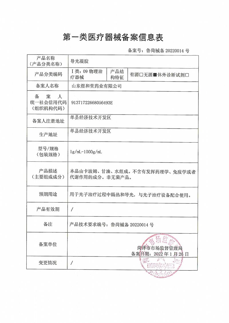 | 英文名称 | Yuhe Tang Guided Light Gel”或“Yuhe Tang Light-Guiding Gel |