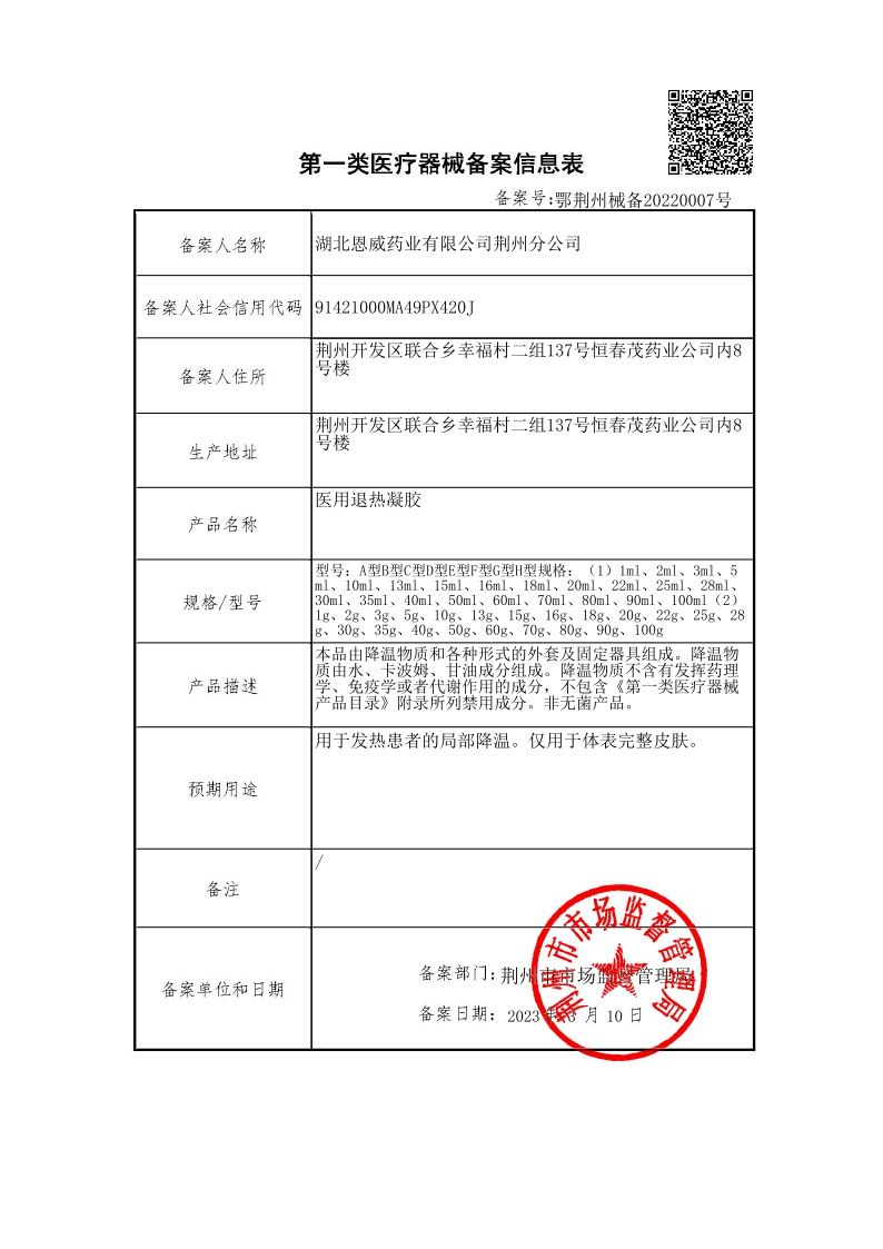| 补充说明 | 本品由降温物质和**形式的外套及固定器具组成。降温物质由水、卡波姆、甘油成分组成。降温物质不含有发挥药理学、免疫学或者代谢作用的成分,不包含《**类医疗器械产品目录》附录所列禁用成分。非无菌产品。 |
