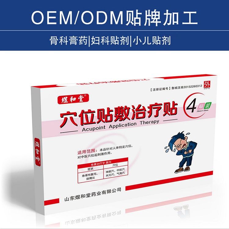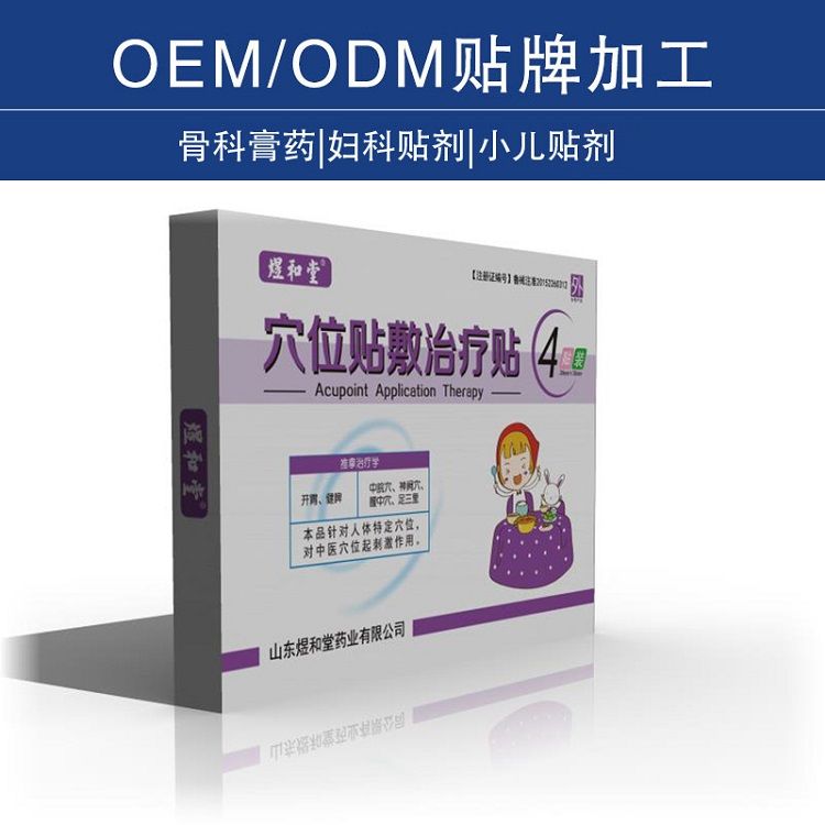 | 补充说明 | 感冒贴、咳嗽贴、腹泻贴:穴位贴敷、绿色疗法,不经过肝肾代谢直达病灶,更可靠。解决了打针怕疼、吃药怕苦的实际问题,同时避免了西药抗生素对小儿身体的伤害,使用贴剂产品解决孩子的痛苦,小儿脐贴加工,儿童膏药oem加工厂家现在很多医院和药店都用上了儿科贴剂产品,就是为了适应要求,少打针,少吃药,配合贴剂使用,关心小儿健康问题。 小儿脐贴加工,儿童膏药oem加工厂家儿童石膏投资代理厂家的正规性也和产品质量挂钩,客户在选择厂家时,首先要了解这个厂家的正规性,虽然现在社交网络发达,QQ,Emeil,微信,不管离客户多远,都可以互相联系,但是声音有代表性,电话沟通有感染力,不可替代。经常给我们的代理打电话无异于接近客户。,小儿病症很多,很多都是配合贴剂使用的,您有自己的配方,在加上我们的贴剂产品,事半功倍的效用,有违规、违法行为;甚至那些没有自己工厂的也在吸引客户。于是,走访了贴膏加工厂,确认了山东煜和堂医疗器械贴膏代工厂的实力,是否能生产出自己需要的产品。 您可以随时与我们联系,我们是专业做贴剂产品的厂家,可以给您提供多种产品,无论是小儿贴剂,还是其他贴剂产品,选择一个厂家,可以有多个产品,可以做,而且都是有正规的产品文号,可以放心做市场的产品,可以到我们公司厂区去参观考察,了解我们公司的实力,这样才让您更放心。 |