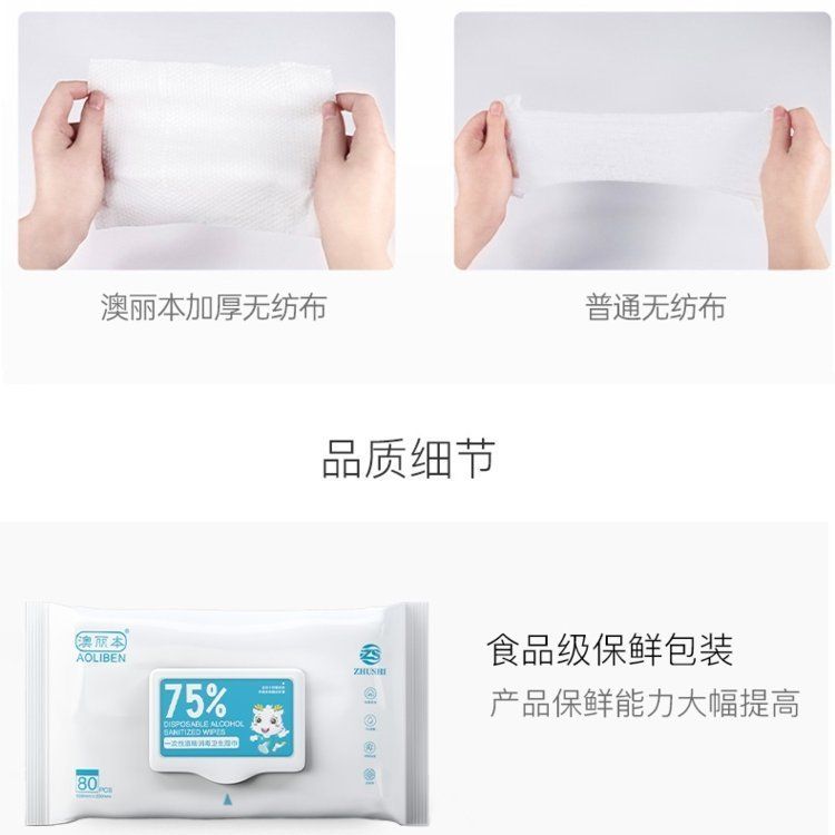 | 其它说明 | 酒精湿巾一般是一片洁净的无纺布,蘸75%左右的医用酒精溶液,制成的片状的消毒用品。它的成分中含有75%的乙醇,因此具有杀菌、消毒的作用。酒精湿巾采用独立包装,卫生便捷,减少细菌滋生,携带方便,且易撕裂,而且亲肤舒适,不掉毛、韧性强、不刺激,快速挥发残留少,是家庭常备的产品。 |