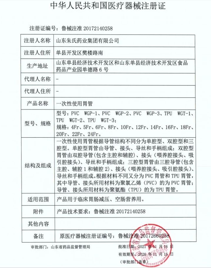 | 产品卖点 | 胃管生产厂家济南秦鲁药业面向全国招商,器械类文号,临床挂网,详询18866853400 |