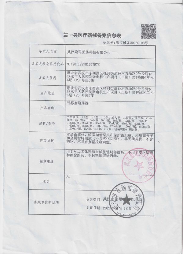 | 主要成分 | 【产品描述〕本品由瓶体、喷雾抛射泵头和保护盖组成。采用高分子和金属材料制成(不含雾化功能)。非无菌提供。不含药物。 |
