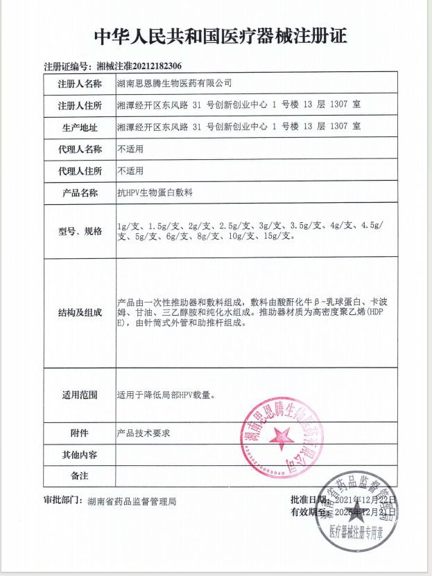 | 产品用途 | 适用于降低局部HPV载量。 |