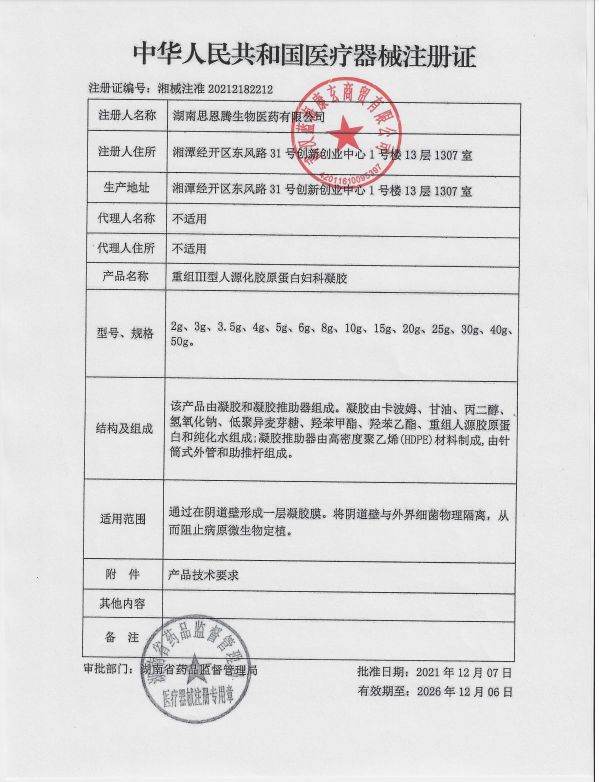 | 产品名称 | 博鲁重组Ⅲ型人源化胶原蛋白妇科凝胶 |