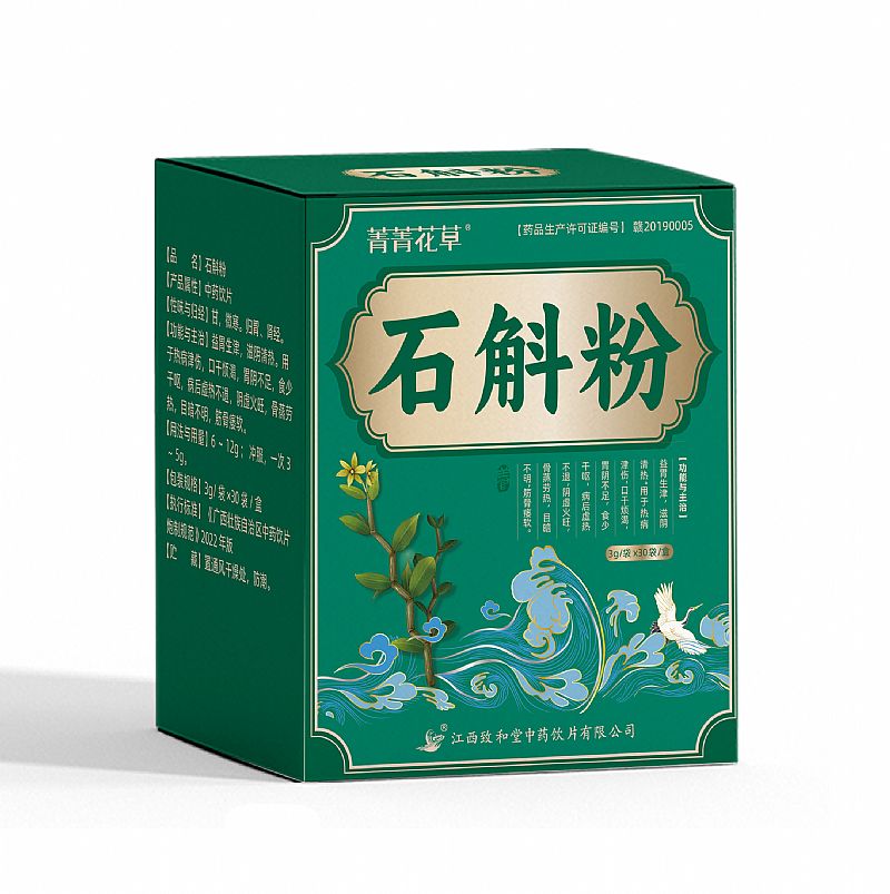 | 补充说明 | 首先石斛粉具有清热的功效,可以清虚热。其次石斛粉具有滋肺养胃的功效,可以促进津液的生长,常用来治疗阴虚津亏的**症状。另外石斛粉具有杀菌消炎的功效,可以消灭幽门螺旋杆菌,一般用于治疗幽门螺旋杆菌造成的萎缩性胃炎等疾病,还可以帮助患者消化。 |